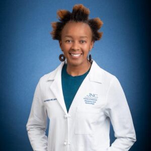 Dr. Mungo received a bachelor’s degree with Honors from the University of California in Berkeley. She received her medical degree from the University of California, San Francisco, where she graduated with Distinction in Clinical and Translational Research. She also completed a master’s in public health from the Johns Hopkins School of Public Health. Dr. Mungo has published seventeen peer-reviewed manuscripts in international journals and is leading several clinical trials evaluating the feasibility of using topical, self-administered therapies for HPV and cervical precancer treatment in low-resource settings. She was named a Young Cancer Leader in 2021 by the Union of International Cancer Control and, in 2022, received the Victoria’s Secret Global Fund for Women’s Cancers Career Development Award. Her research is also funded by the National Institute of Health (U.S.A) and the University of North Carolina Lineberger Comprehensive Cancer Center. Dr. Mungo is motivated by her experiences growing up in a small town in Kenya and witnessing the health impact of weak health systems among women already facing the double burden of poverty and patriarchy.